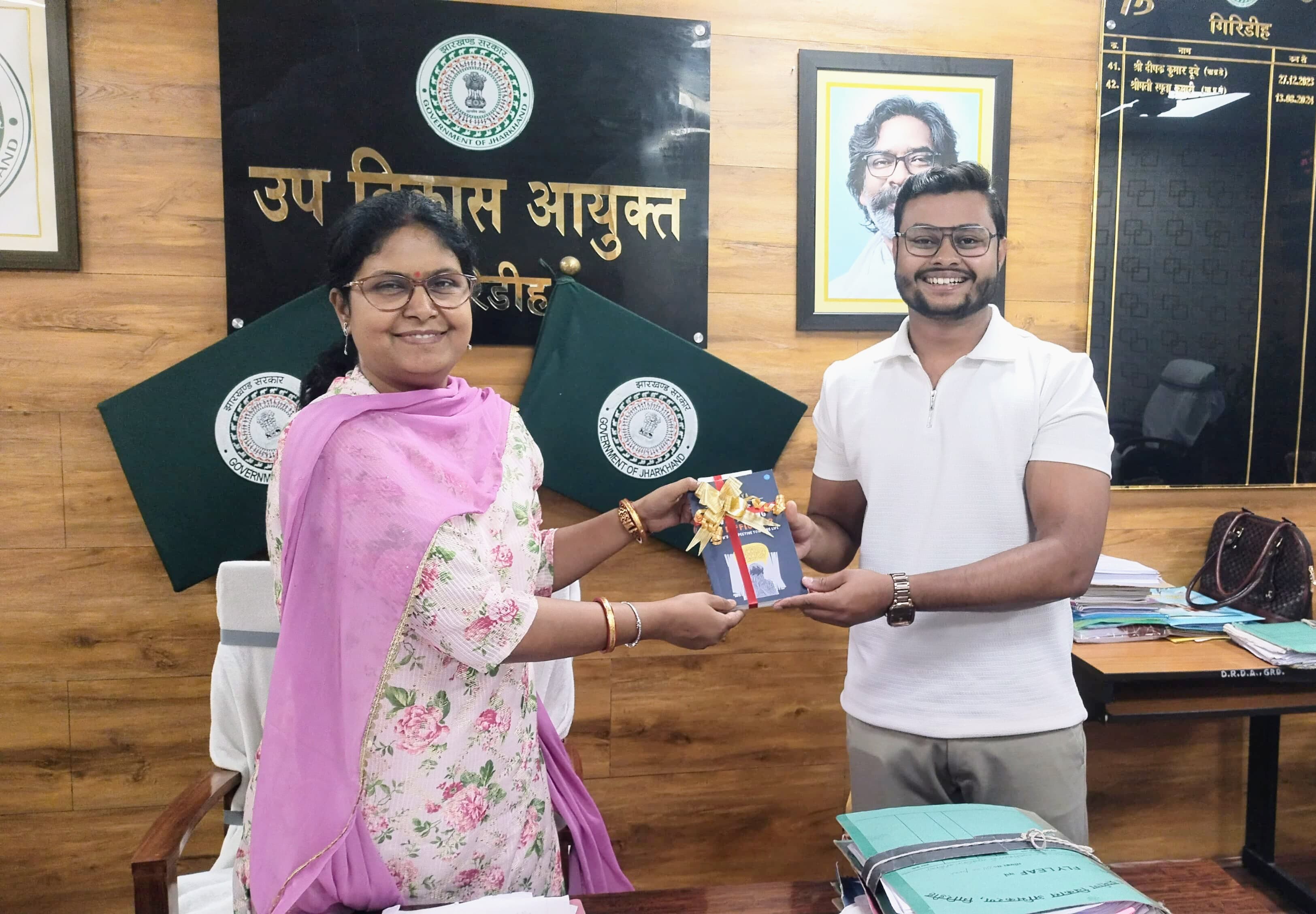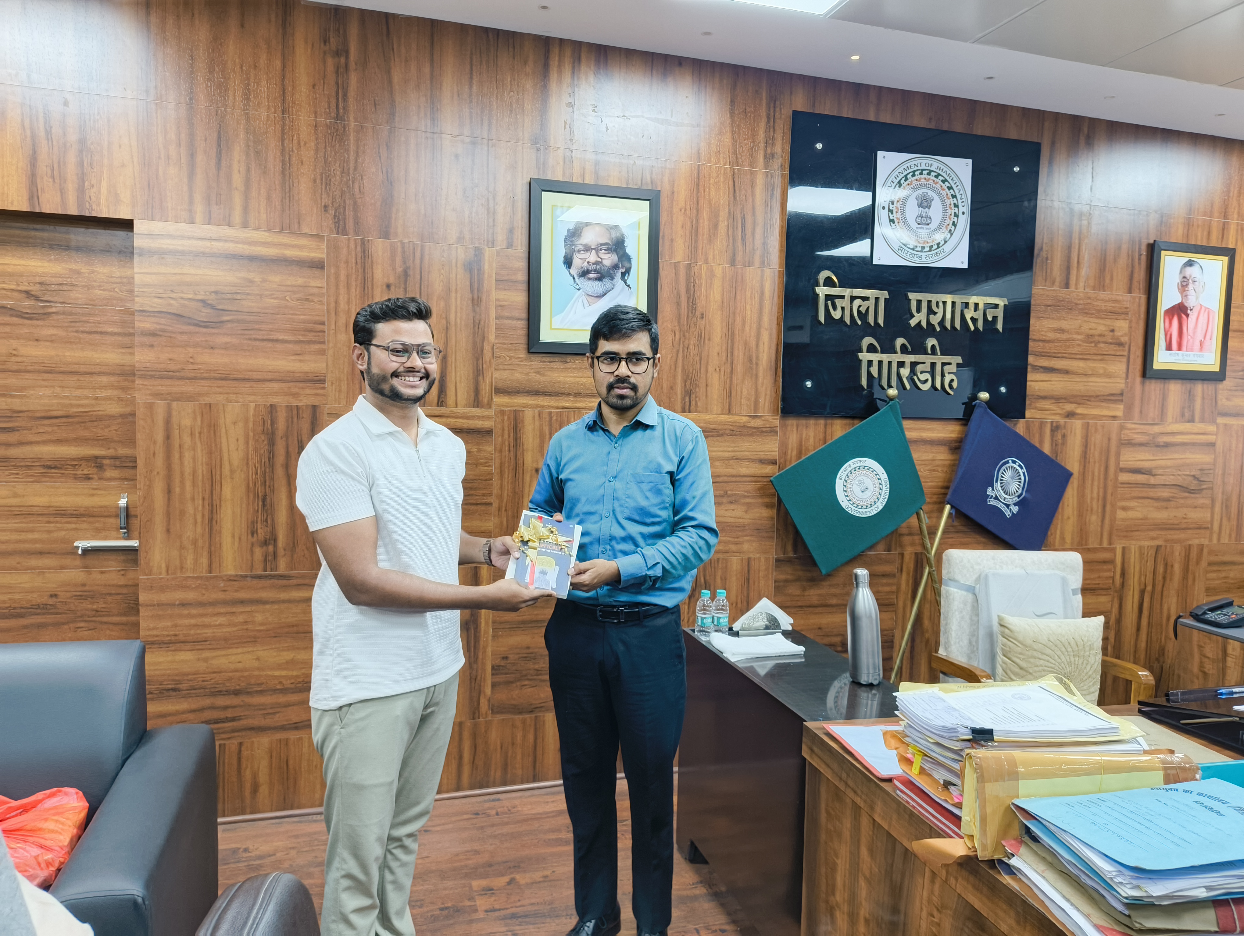 I had the honor of meeting Sri Naman Priyesh Lakra Sir (Deputy Commissioner) and Smt. Smrita Kumari Ma’am (Deputy Development Commissioner) of Giridih, Jharkhand. Presenting them with my book and receiving their encouragement was truly inspiring.